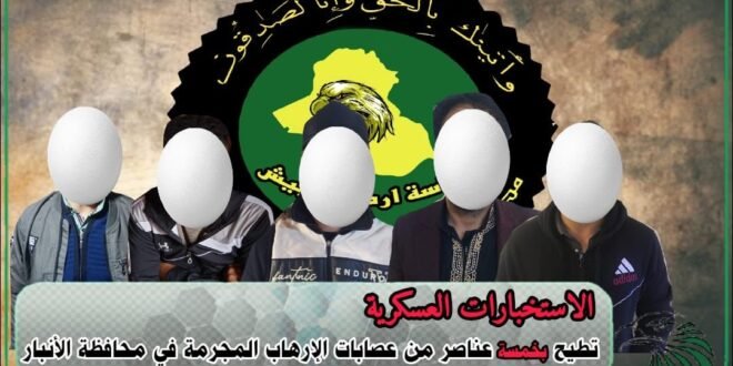 وأضافت أن “العملية اسفرت عن إلقاء القبض على ( 5 ) عناصر تابعين لداعش الارهابي ومطلوبين للقضاء العراقي وفق احكام المادة ( 4 / ارهاب ) في قضاء الرمادي والرطبة وكرمة الفلوجة”.