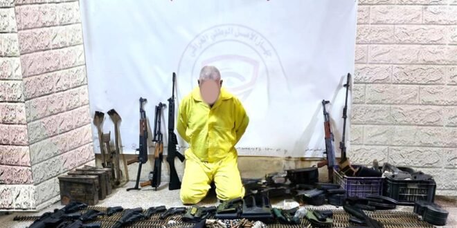 وذكر الجهاز في بيان: أن “مفارز جهاز الأمن الوطني في محافظة المثنى وبعد استحصال الموافقات القضائية اللازمة تمكنت من إلقاء القبض على متهم يتاجر بالسلاح.”