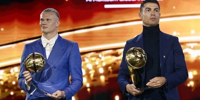 كما توج المهاجم النرويجي إيرلنج هالاند، لاعب مانشستر سيتي، بجائزة أفضل لاعب في العالم في حفل توزيع جوائز جلوب سوكر، اليوم الجمعة.