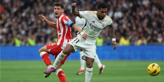 ويحتل ريال مدريد وصافة الليجا برصيد 51 نقطة، فيما يأتي يتذيل ألميريا الترتيب ب6 نقاط.