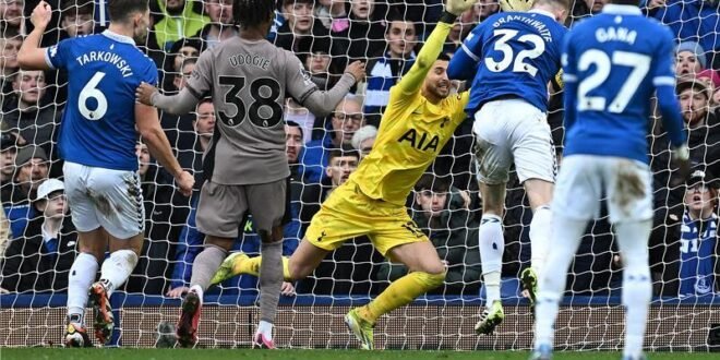 وكان توتنهام في طريقه للخروج فائزا وحصد 3 نقاط ثمينة، لكن جاراد برانثوايت تقمص دور البطولة وخطف هدف التعادل لإيفرتون في الدقيقة (90+4).