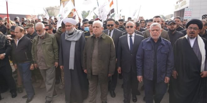 انطلقت في العاصمة بغداد، اليوم الاحد (4 شباط 2024)، مراسيم تشييع شهداء القصف الأمريكي على منطقتي القائم وعكاشات غرب العراق.