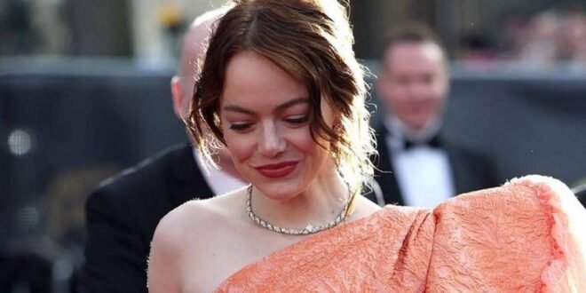أما النجمة إيما ستون التي فازت بجائزة أفضل ممثلة رئيسية عن فيلم “Poor Things”، فاختارت للحفل فستاناً باللون البرتقالي من Louis Vuitton يتميز بكمّ واحد ضخم ومنتفخ، وبقماش الجاكار الحريري والأورغانزا بأسلوب الثمانينيات، مع حركة ناعمة عند الصدر وما يشبه الكشكش عند الأطراف السفلية. وتزيّنت الممثلة العالمية بمجوهرات من دار الأزياء الفرنسية، تضمنت قلادة وأقراطاً وخاتماً من الذهب الأصفر والماس البلاتيني.