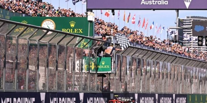 توج الإسباني كارلوس ساينز سائق فريق فيراري بطلاً لسباق جائزة استراليا الكبرى للسيارات الحلقة الثالثة من بطولة العالم لسباقات فورمولا 1 اليوم الأحد بعد خروج سائق رد بول الهولندي ماكس فيرشتابن بطل العالم من السباق بسبب مشكلة في المكابح.