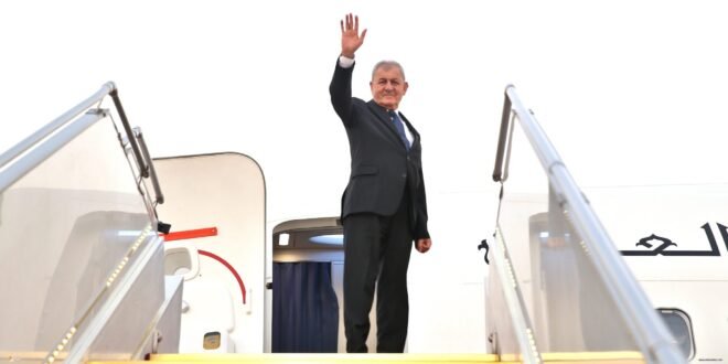 وأضاف أن “الرئيس يرافقه وفد حكومي ضم كلا من وزير الصناعة والمعادن خالد بتال، وعضو مجلس النواب طالب خليل راهي، إضافة إلى عدد من المسؤولين والمستشارين”.