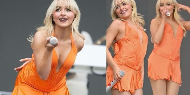 خلال الحفل الذي أحيته في لندن، فتنت سابرينا الجمهور البريطاني وهي تؤدي أجمل أغانيها وأكثرها رواجاً، بإطلالتها بفستانٍ برتقالي من الفسكوز قصير جداً مكشوف الصدر وكامل الظهر بنمط “هالتر نك” وبتفصيل الـ “كورسيه” المزموم، اختارته من مجموعة قديمة لـ Roberto Cavalli يعود تصميمها لربيع وصيف 2005، وانتعلت جزمة طويلة من الجلد الأبيض بمنصّة ضخمة وكعب عريض عال مرصّع بالسواروفسكي.