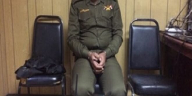 وأضاف ان “3 اتصالات مهمة بين بعقوبة وبغداد حول هوية الضابط كشفت زيف ادعائه وبعد جمع معلومات دقيقة خلال 4 أيام تم الإطاحة به بكمين قرب بعقوبة بعد استدراجه”، لافتا الى ان “شكاوى عدة قدمت عليه وبعد عرض ملفه على القاضي تم توقيفه وفق المادة 260 من قانون العقوبات العراقي وسيتم اتخاذ الإجراءات القانونية بحقه”.