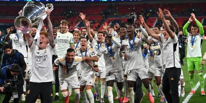 وانتزع الـ”ميرنغي” لقب النسخة الحالية من المسابقة الأوروبية، بالفوز على نظيره بوروسيا دورتموند الألماني، 2-0، السبت، في النهائي الذي جمع بين الفريقين على ملعب “ويمبلي” بقلب العاصمة الإنكليزية لندن.