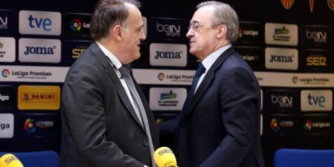 تحدث خافيير تيباس، رئيس رابطة الدوري الإسباني، عن صراعه مع فلورنتينو بيريز، رئيس ريال مدريد.