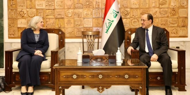 بحث رئيس ائتلاف دولة القانون، نوري المالكي، اليوم الثلاثاء (16 تموز 2024)، مع السفيرة الامريكية في بغداد ألينا رومانوسكي، الاتفاقية العراقية الامريكية.