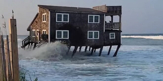 منبر العراق الحر:أظهر فيديو دراماتيكي ابتلاع المحيط الأطلسي منزلا في ولاية كارولينا الشمالية الأمريكية.