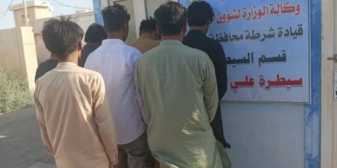 وقالت القيادة في بيان : “استنادا لتوجيهات وزير الداخلية وبإشراف قائد شرطة محافظة ميسان اللواء الحقوقي لفتة فاخر المحمداوي وضمن الحملة الرامية التي اطلقتها وزارة الداخلية للحد من ظاهرة العمالة الأجنبية غير الرسمية، تمكنت قوة أمنية من اعتقال 7 مخالفين لشروط الإقامة من الجنسية الباكستانية في سيطرة علي الغربي شمال المحافظة”.