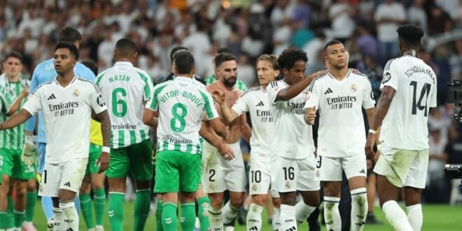 افتتح النجم الفرنسي كيليان مبابي الذي ظل صائما عن التهديف خلال المباريات الثلاث الاولى في الدوري الإسباني لكرة القدم رصيده بتسجيله هدفي الفوز على ضيفه ريال بيتيس 2-0، ضمن منافسات المرحلة الرابعة الأحد.