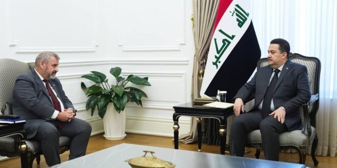 وذكر المكتب الإعلامي للسوداني في بيان: إن “السوداني استقبل سفير الاتحاد الأوروبي لدى العراق توماس سيلر، حيث جرى بحث مجالات التعاون بين العراق ودول الاتحاد الأوروبي، واستعراض تطورات الأوضاع في المنطقة، واستمرار العدوان الصهيوني على كل من لبنان وغزّة”.