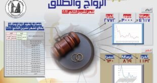 منبر العراق الحر : نشر مجلس القضاء الاعلى، اليوم الثلاثاء، إحصائية رسمية لحالات الزواج والطلاق في العراق خلال شهر تشرين الثاني/نوفمبر الماضي. ووفقا للاحصائية، فإن العاصمة بغداد بجانبيها الرصافة والكرخ قد تصدرت العراق في عقود الزواج المسجلة بـ 7389، وتلتها محافظة نينوى بـ3000 عقد مسجل في المحاكم المدنية. وأشارت الاحصائية …