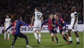 منبر العراق الحر : استعاد برشلونة، طريق الانتصارات، بفوز ساحق بنتيجة (7-1) على فالنسيا، ضمن منافسات الجولة 21 من الليجا، على ملعب لويس كومبانيس الأولمبي. وسجل سباعية البارسا، فرينكي دي يونج، فيران توريس، رافينيا، فيرمين لوبيز “هدفين”، ليفاندوفسكي، وسيزار تاريجا “هدف عكسي”، في الدقائق 3 و8 و14 و24 و(45+4) و66 …