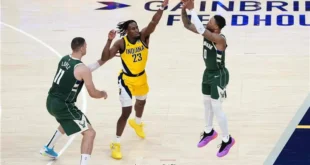 منبر العراق الحر : صعد فريقا إنديانا بيسرز ونيويورك نيكس للدور قبل النهائي، في مرحلة خروج المغلوب ببطولة الدوري الأمريكي لكرة السلة للرجال (إن بي إيه)، على حساب ميلواكي بكس، وفيلادلفيا سيفنتي سيكسرز، على الترتيب. وتغلب بيسرز على ضيفه بكس بنتيجة 120/98، بينما فاز نيكس على مضيفه سيفنتي سيكسرز 118/115، …