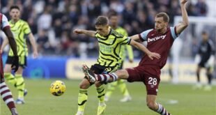 منبر العراق الحر : سحق آرسنال، مضيفه وست هام يونايتد بنتيجة 6-0، اليوم الأحد، في إطار الجولة 24 من عمر الدوري الإنجليزي الممتاز. سداسية الجانرز حملت توقيع ويليام ساليبا (32)، بوكايو ساكا (41 من ركلة جزاء و63)، جابرييل ماجالهاييس (44)، تروسارد (45+2) وديكلان رايس (65). واستعاد آرسنال، المركز الثالث، بعدما …