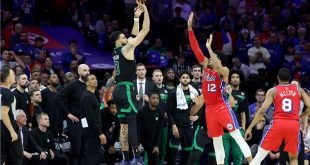 منبر العراق الحر :تغلب بوسطن سيلتكس على مضيفه فيلادلفيا سيفنتي سيكسيرز (102-114) ليتقدم عليه (2-1) في سلسلة نصف نهائي القسم الشرقي بالأدوار الإقصائية بدوري كرة السلة الأمريكي للمحترفين “إن بي إيه”. تسلم الكاميروني جويل إمبيد، نجم سيكسير قبل دقائق من انطلاق المباراة، جائزة أفضل لاعب في الموسم محاطا بوالديه وابنه. …