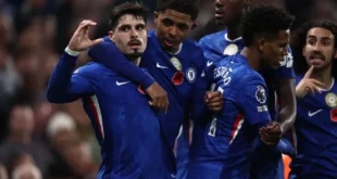 منبر العراق الحر : تقدم تشيلسي إلى المركز الثاني مؤقتا على سلم ترتيب الدوري الإنجليزي الممتاز، بفوزه مساء السبت على ضيفه وولفرهامبتون 3-0، ضمن الجولة الحادية عشرة. وسجل ثلاثية تشيلسي كل من مالو جوستو (51) وجواو بيدرو (65) وبيدرو نيتو (73). وارتفع رصيد تشيلسي بهذا الفوز إلى 20 نقطة في …