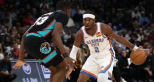 منبر العراق الحر : عاد أوكلاهوما سيتي ثاندر، حامل اللقب من تأخر بلغ 19 نقطة في النصف الأول ليهزم مضيفه ممفيس غريزليز 114-100 الأحد، ويعزّز رصيده الأفضل هذا الموسم بعشرة انتصارات مقابل خسارة واحدة ضمن دوري كرة السلة الأمريكي للمحترفين. وسجّل الكندي شاي غلجيوس-ألكسندر 13 من نقاطه الـ 35 في …