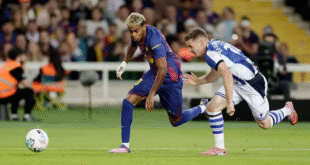 منبر العراق الحر : حقق فريق برشلونة، مساء الأحد، فوزاً ثميناً على حساب نظيره ريال سوسيداد 2-1 في الجولة السابعة من الدوري الإسباني، على ملعب مونتجويك. وتقدم فريق سوسيداد عن طريق ألفارو أودريوزولا في الدقيقة 31، في حين سجل جول جوندي هدف التعادل لصالح برشلونة في الدقيقة 43. وفي الدقيقة …